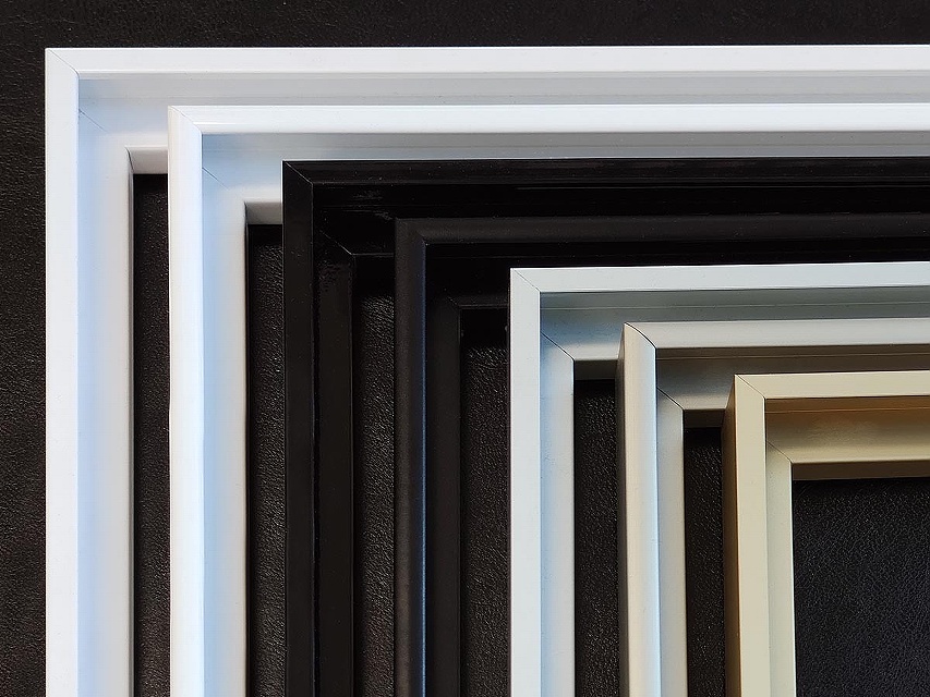 We offer frames from aluminium and wooden profiles in different styles: photo frames, floater frames, thin Lenia frames, shadow box frames in basic colors and some special colors or finishes.