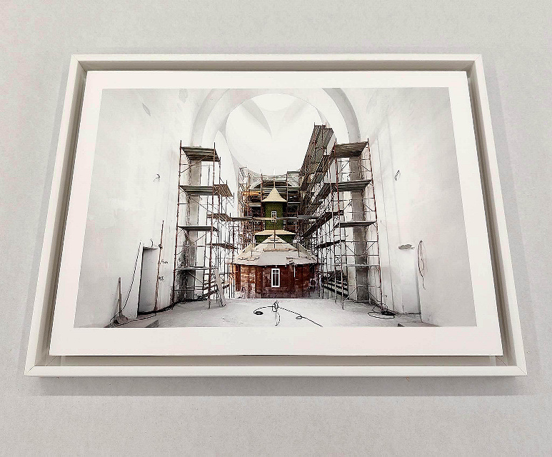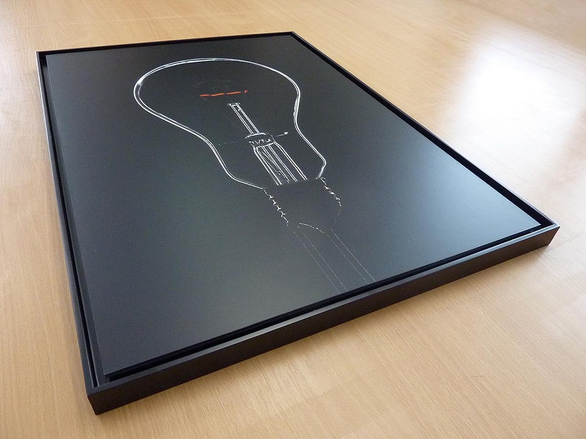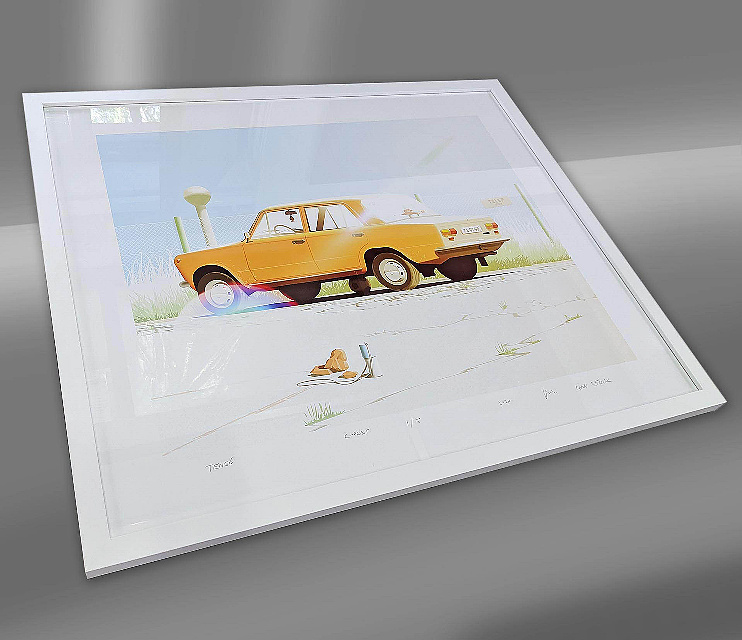 A special spatial effect is achieved by placing the image in a thick, glassy frame, deeper than the plane of the glass on the back. It is even better if the image is slightly smaller, e.g. for prints with a patterned edge, the image floats halfway between the backing and the glass, slightly lifted.