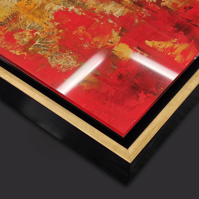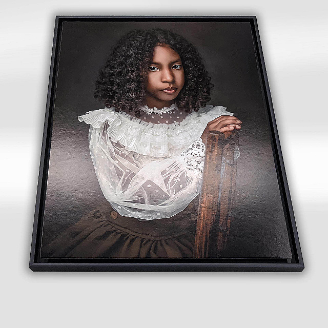 You can also order your canvas works framed, with a cover frame - which is the same profile as the photo frame, or with a floater frame. You can see the side edge of the canvas mounted in the floater frame.