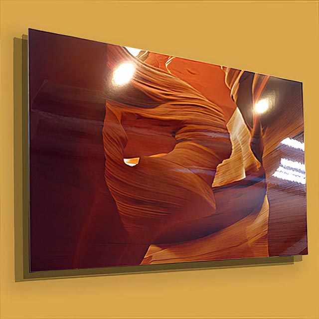 Deep Water Film gives glass-like glossy finish to your photo print. It is mounted onto an opaque board, which means no light will pass through the print. Colours are more vivid and the details in your photo are heightened.